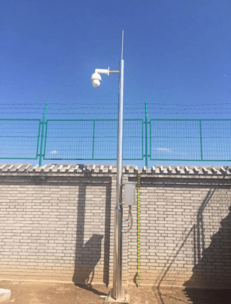施工現場,監控桿高度4.5米,材質為純304不銹鋼,壁厚4mm。